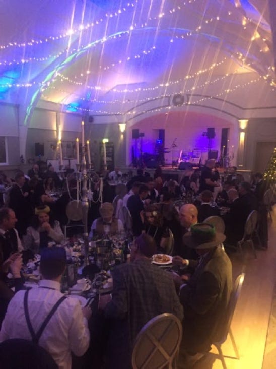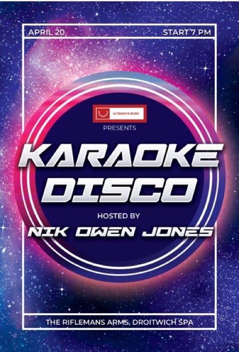 Full professional setup with multiple mics, screens, quality PA and monitoring, lighting, host and disco infill.