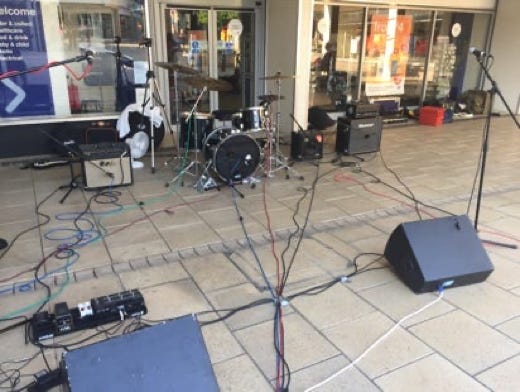 Full professional setup with vocal, instrument and drum mics, quality PA and monitoring, lighting and engineer. Contact: